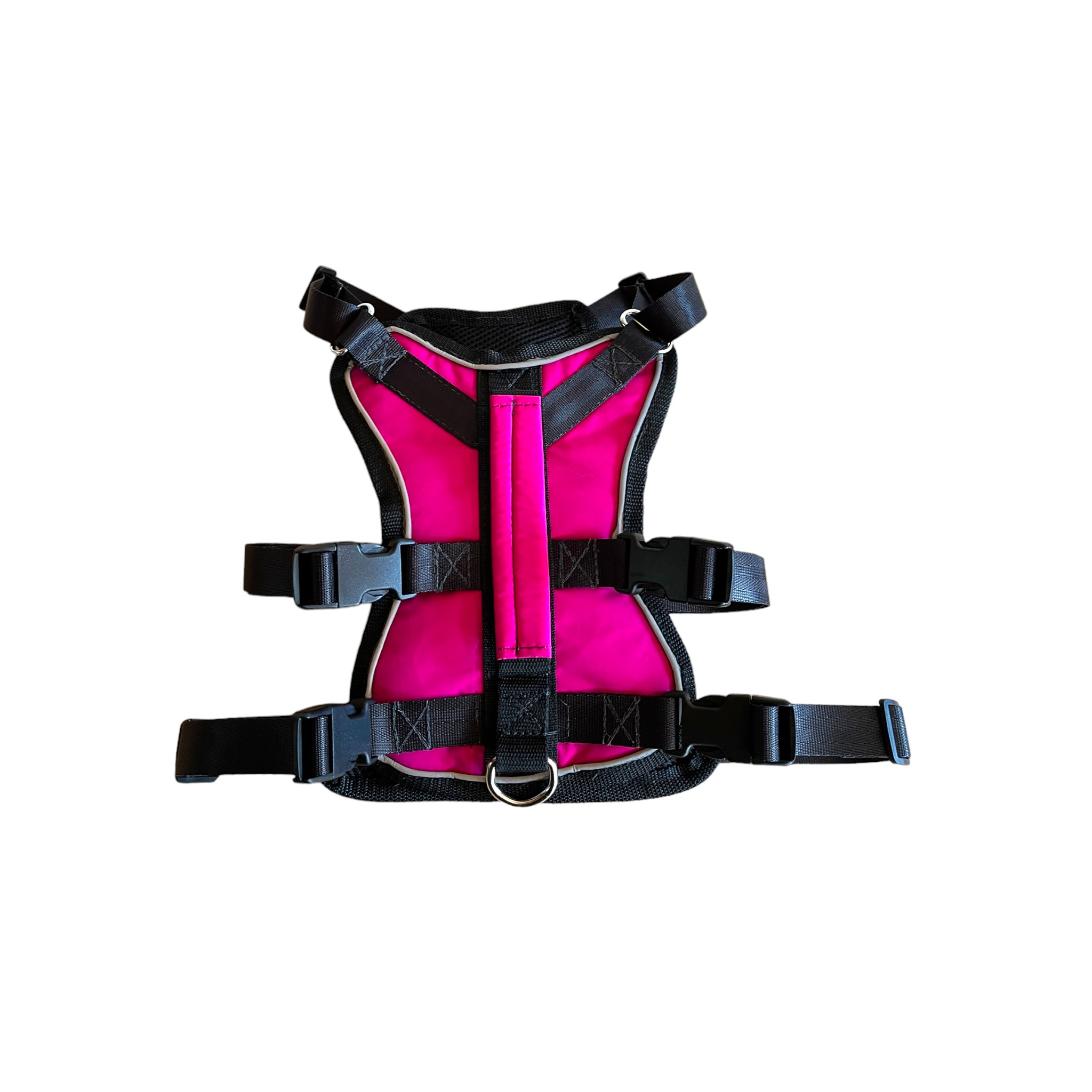 Cada arnés es elaborado a mano por nuestro equipo, utilizando materiales de alta resistencia y costuras reforzadas. Su diseño incluye tres puntos de ajuste anatómico, además de una correa extra en la zona abdominal, que impide que el perro pueda retroceder y zafarse, incluso en situaciones de estrés o tirones fuertes.